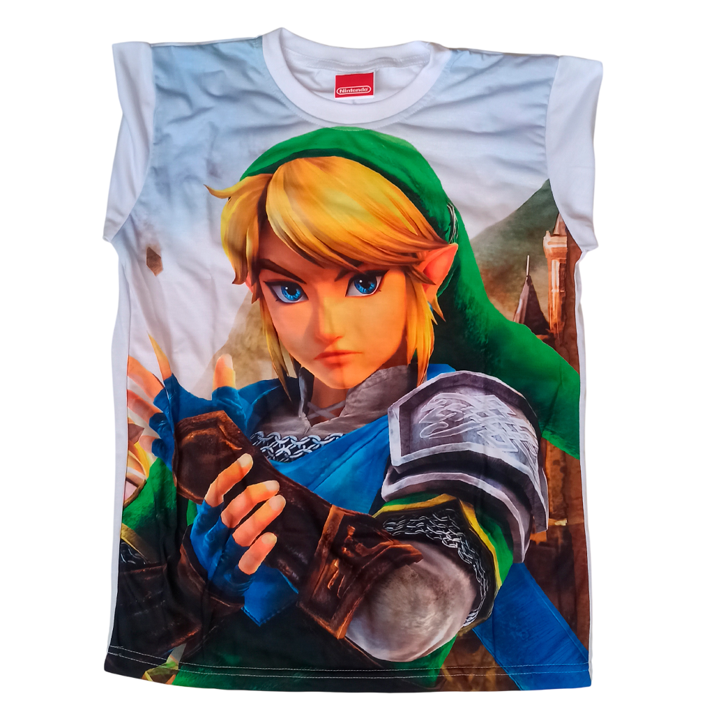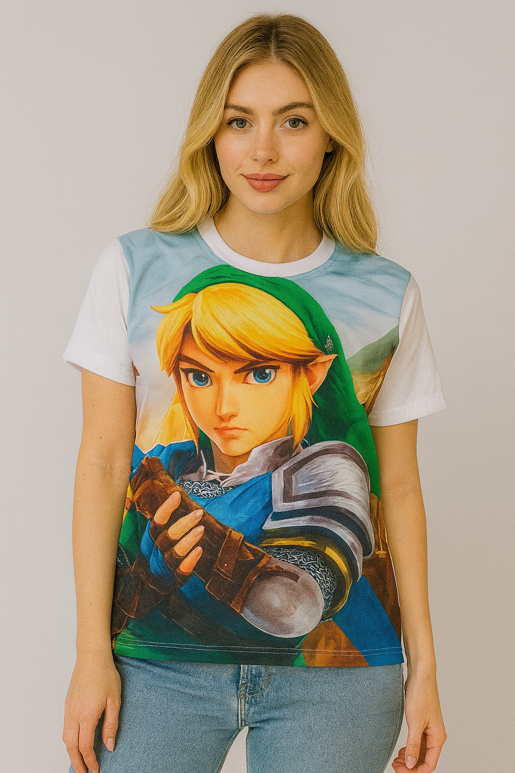 Directo desde Age of Calamity, Link llega en un diseño full color que captura su fuerza, agilidad y determinación. Esta camiseta blanca combina arte vibrante con tela suave y fresca, ideal para tus misiones diarias… o para comandar el campo de batalla desde tu consola.